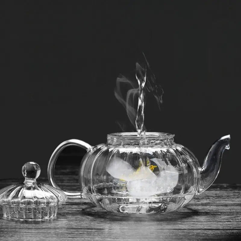 Façonnée selon l’art traditionnel du verre soufflé, cette théière aux lignes citrouille uniques est bien plus qu’un simple objet du quotidien : chaque pièce raconte une histoire, née du geste de l’artisan. Sa transparence hypnotique en verre borosilicate révèle la danse colorée de vos infusions premium, transformant chaque préparation en véritable spectacle visuel.